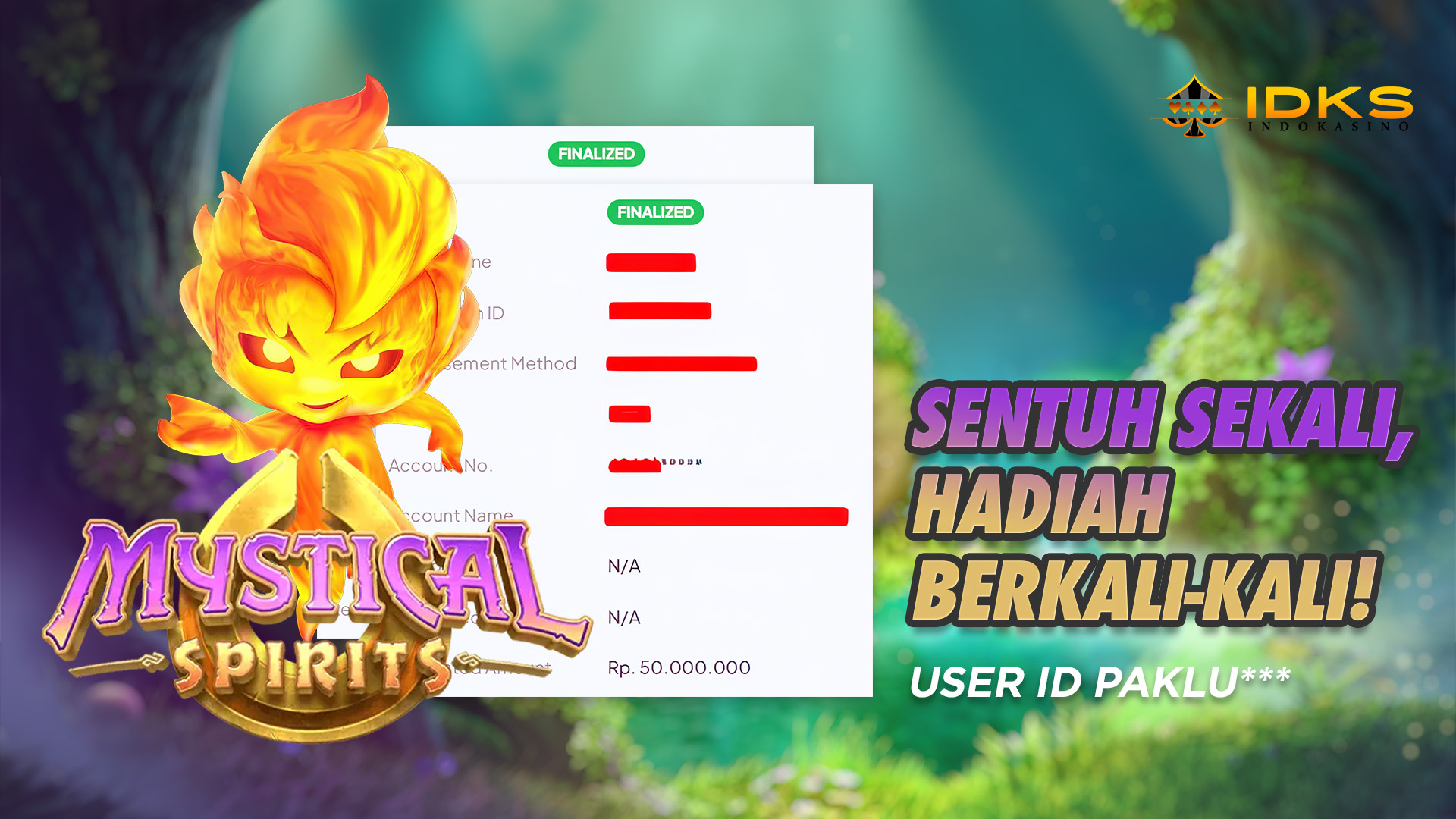 Kemenangan ini bukan hanya sekadar hasil besar, tetapi juga cermin dari ketepatan membaca ritme permainan, kesabaran dalam menentukan momen, dan pemilihan game yang penuh potensi. Dalam artikel ini, kita akan menyelami kisah kemenangan ID PAKLU*** secara mendalam—mulai dari bagaimana alur permainan membawanya menuju kemenangan, strategi yang digunakan, hingga alasan Mystical Spirits menjadi magnet bagi para pemburu sensasi dan hadiah besar di INDOKASINO.