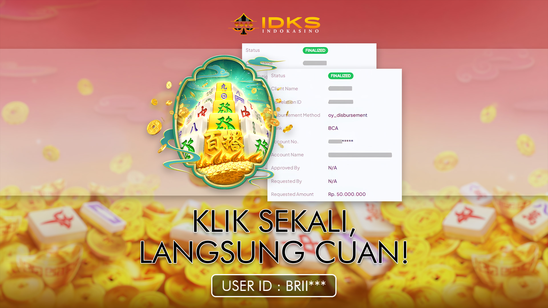 Dalam dunia permainan online yang penuh dinamika dan peluang besar, cerita kemenangan spektakuler selalu menjadi perhatian utama para pemain. Salah satu kisah terbaru datang dari komunitas INDOKASINO, ketika seorang member dengan ID BRII*** berhasil mengubah modal kecil menjadi hasil luar biasa. Dengan hanya bermodalkan bet 150 ribu rupiah, ia sukses mengamankan kemenangan fantastis sebesar 150 juta rupiah saat bermain Mahjong Ways PG Soft, sebuah permainan yang terkenal dengan pola permainan stabil, multiplier tinggi, dan fitur scatter yang memicu free spin berkali-kali.